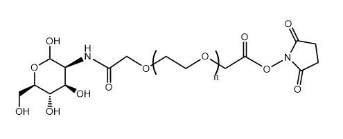 NHS-polyethylene glycol-Mannose, NHS-PEG-Mannose from RuixiBio is a linear heterobifunctional PEG reagent with a NHS and a Mannose group, NHS ester group can react with primary amine.